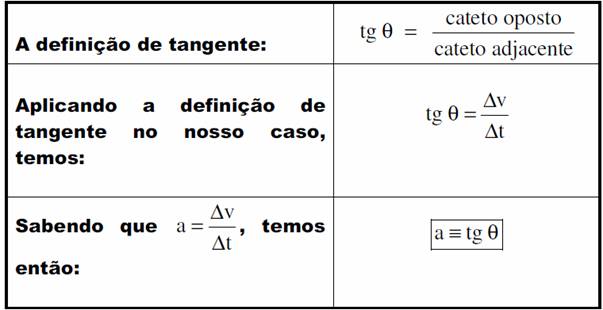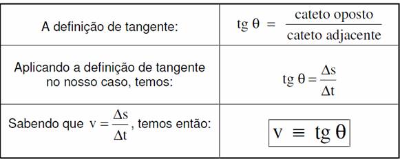 Inclinação da reta= Tgx = (Sfinal - S inicial ) / ( tfinal - tinicial) |