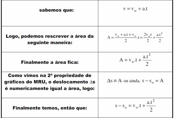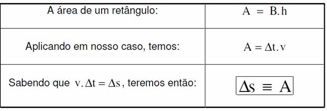 A área do gráfico da aceleração por tempo é a identidade da variação da velocidade.