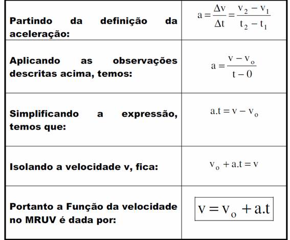 FUNÇÃO HORÁRIA DO MRUV